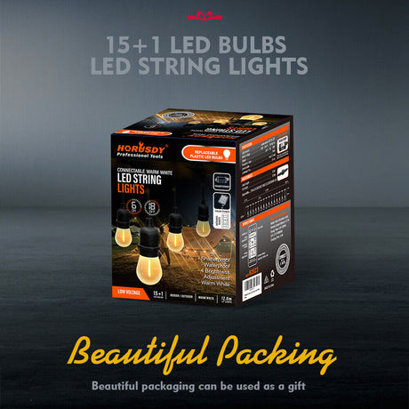 HORUSDY Solar-Powered String Lights - 15 LED, 18.2M, Waterproof for Festoon Wedding Party