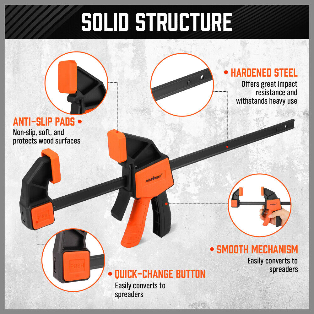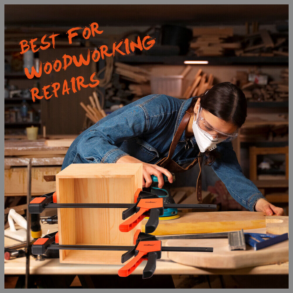 HEAVY DUTY – 12-inch bar clamps provide up to 150 lbs clamping force, perfect for woodworking, carpentry, and DIY projects.