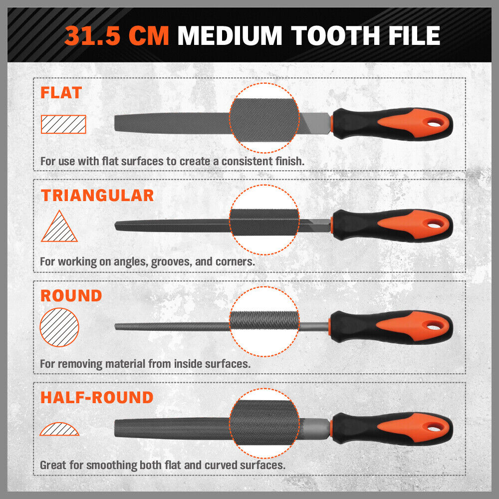 1 x 31.5 cm Medium Tooth Files (Flat, Triangular, Round, Half-Round)