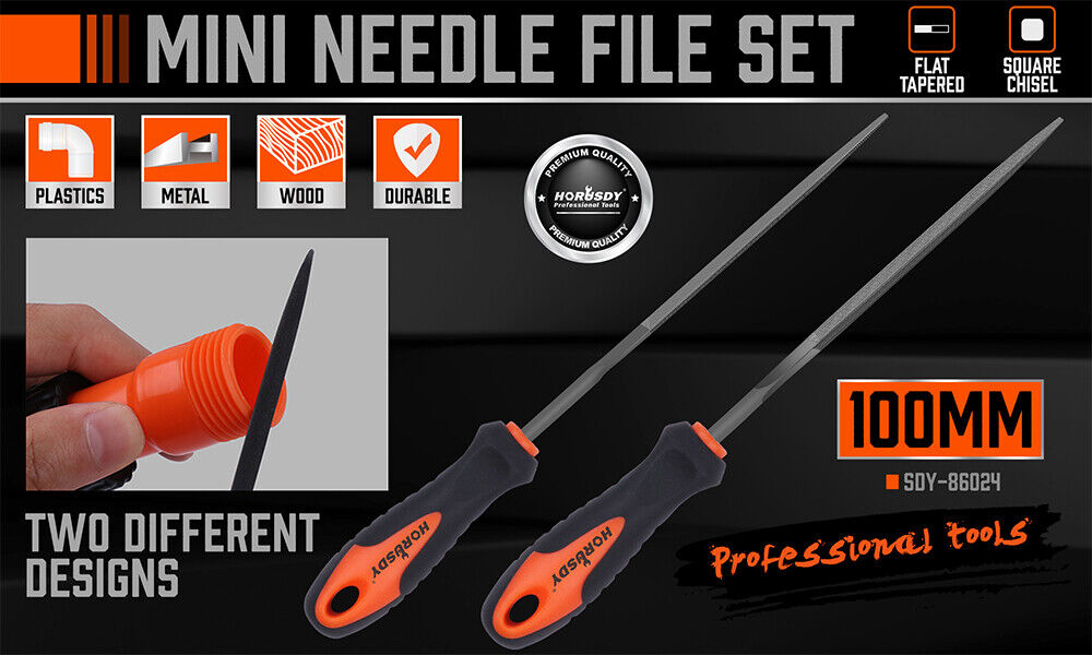 HORUSDY 2Pc 6.1" Flat Mini Needle File Set Metal Wood Carving Carpentry Tool