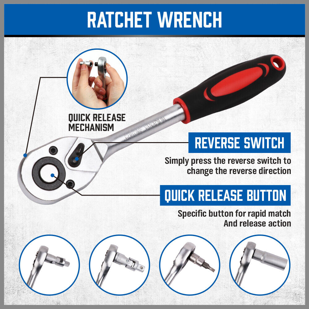 2 × Quick Reversible Ratchet Handles (1/2”, 1/4”)