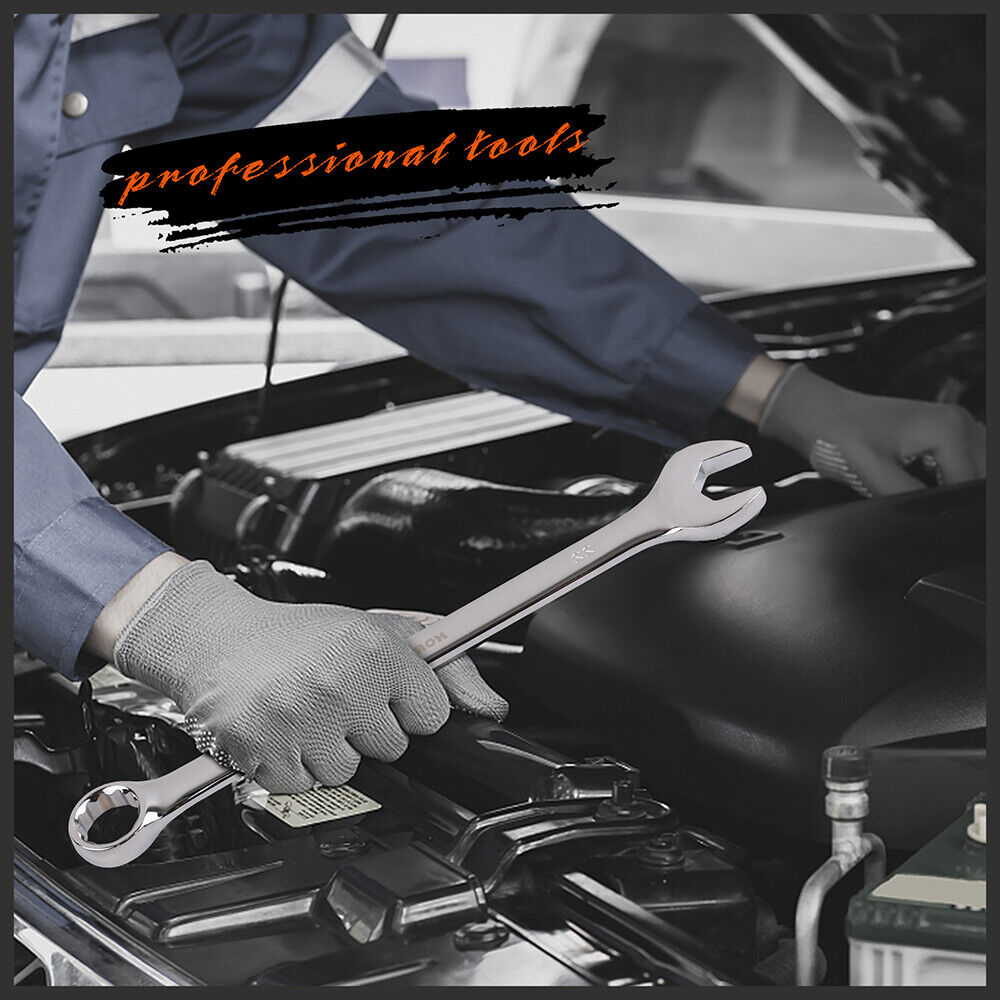 HORUSDY 15-Piece Metric Combination Spanner Set - CRV Silver Ring & Open End Wrenches