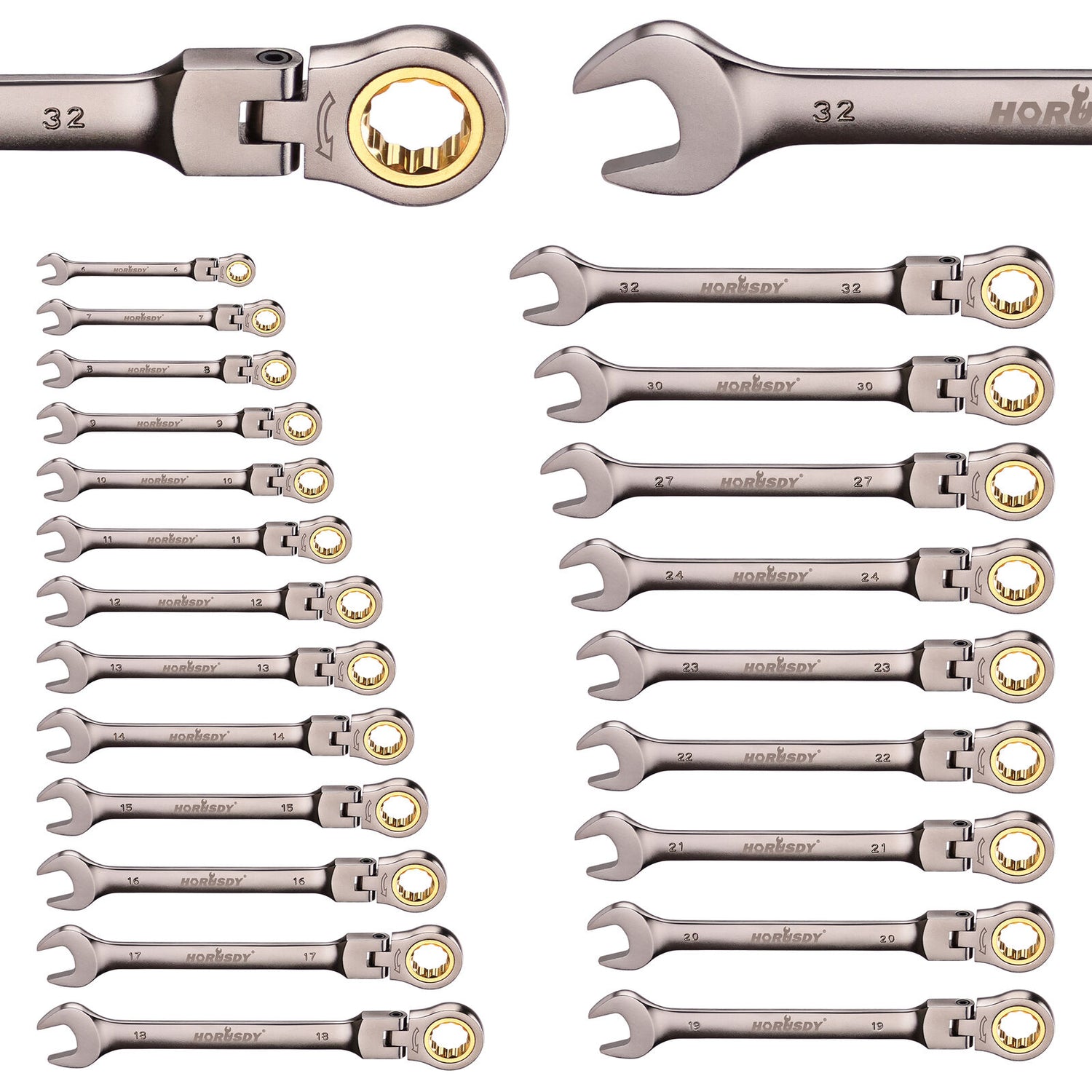 HORUSDY 6-32MM Flexible Head Ratchet Spanner Nickel Plating Ratcheting Spanners