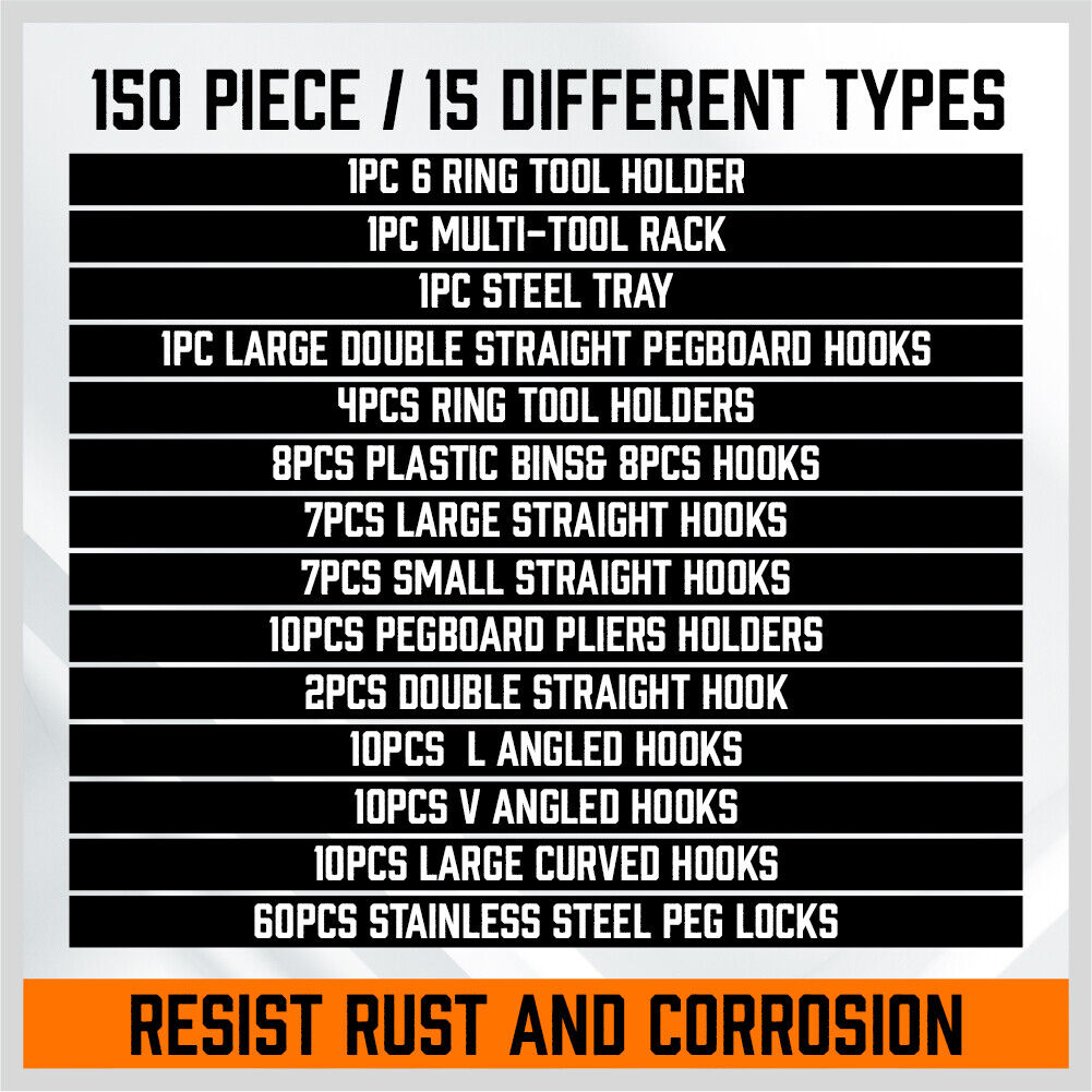 150Pc Pegboard Hook & Bin Set - Versatile Tool Holder and Organizer for Workspaces