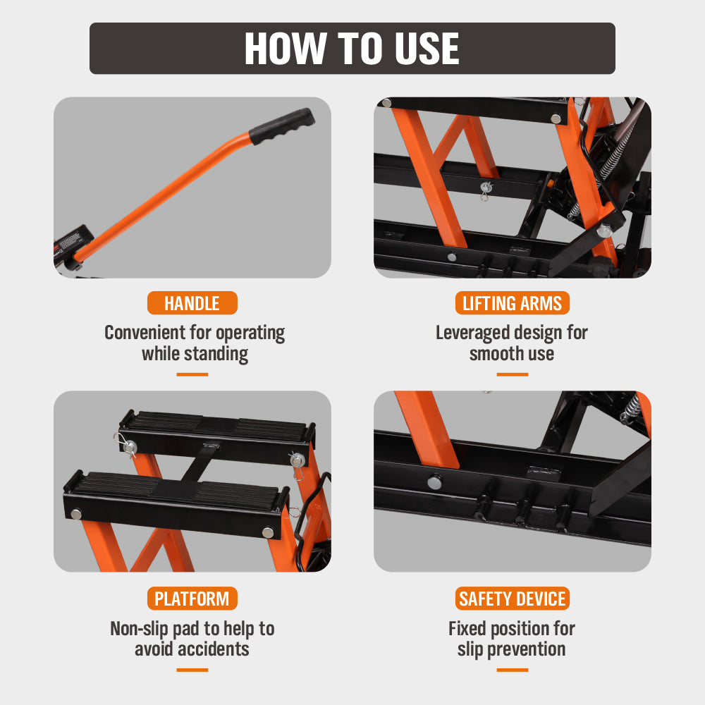 EASY LIFTING DESIGN – Equipped with a hydraulic foot pedal and ergonomic handle, allowing smooth lifting with minimal effort while keeping your hands free for control.
