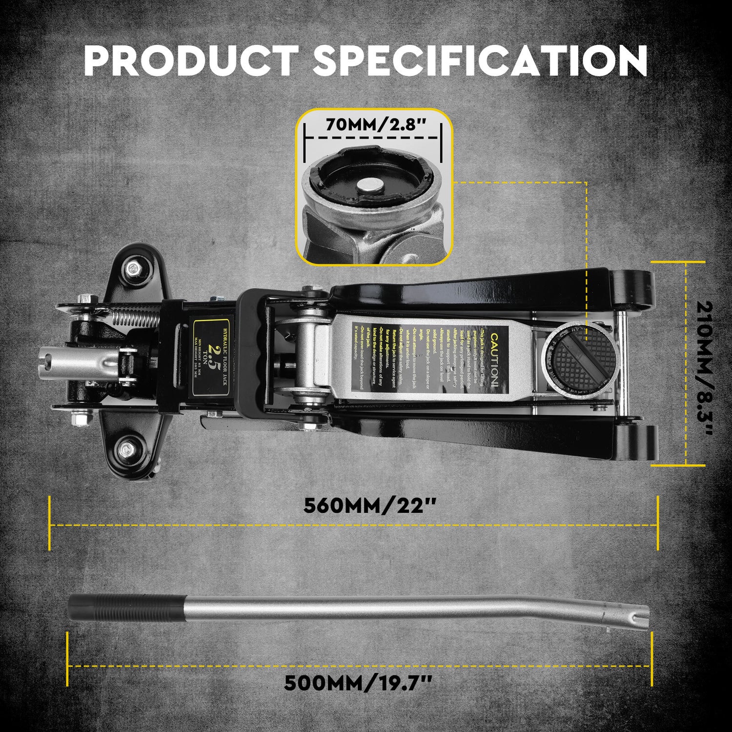 Strong 2.5-Ton Capacity – Perfect for lifting cars, SUVs, and light trucks safely and efficiently during maintenance and emergency repairs.