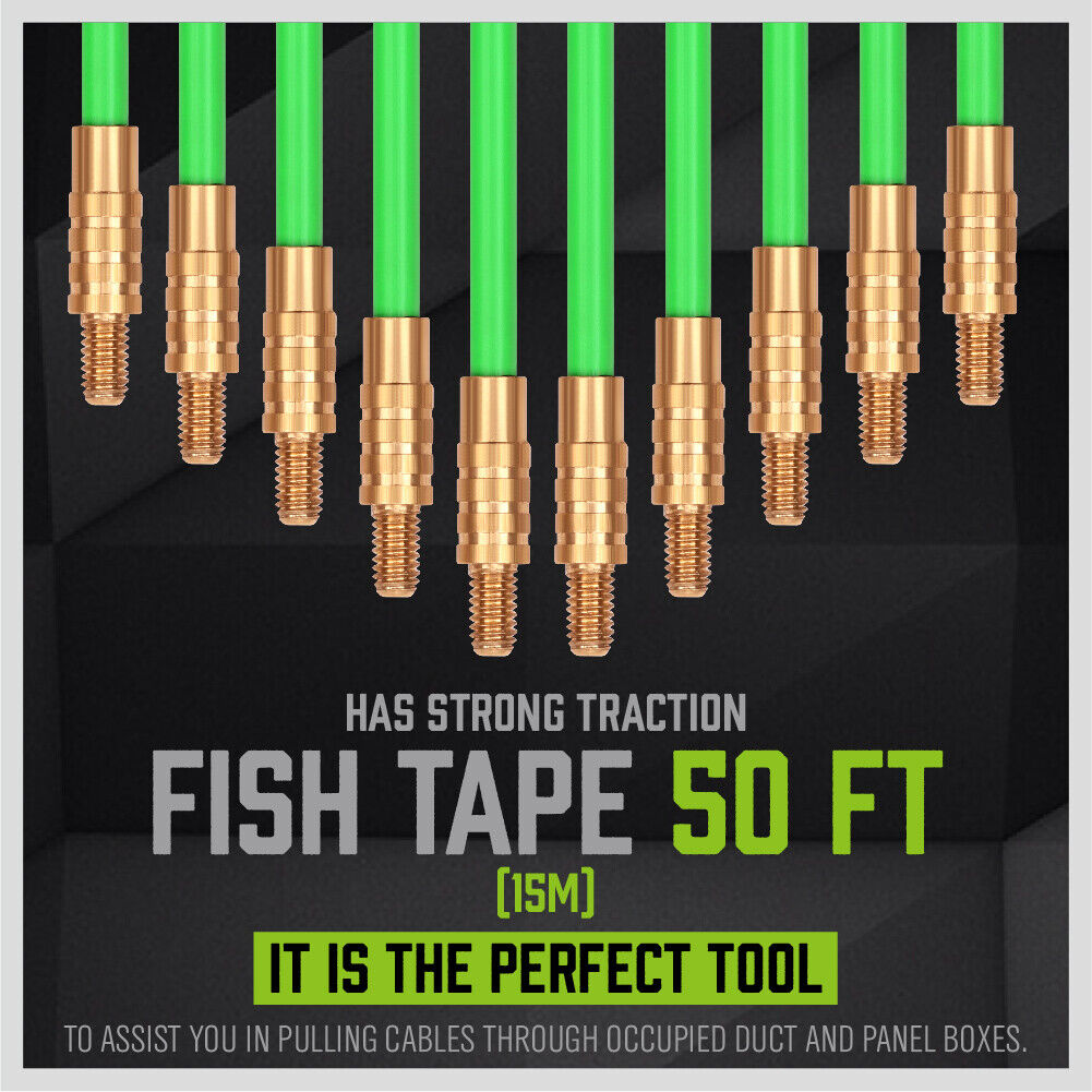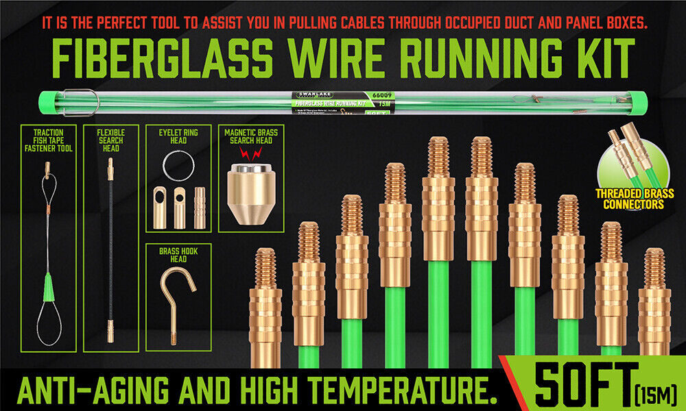 SWANLAKE 15m Fiberglass Push Pull Rods | Cable & Wire Running Tool | Electrician's Aid for Wall & Ceiling Wiring