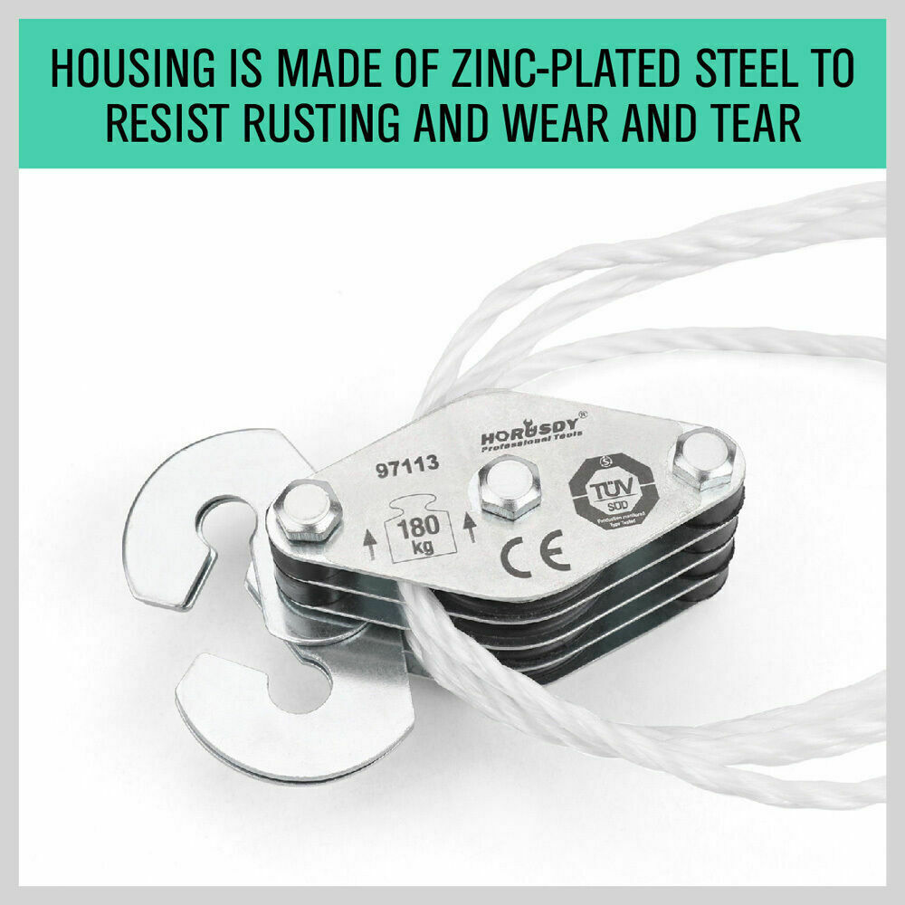 Made with strong metal housing and smooth-rolling wheels to reduce friction and improve lifting efficiency.