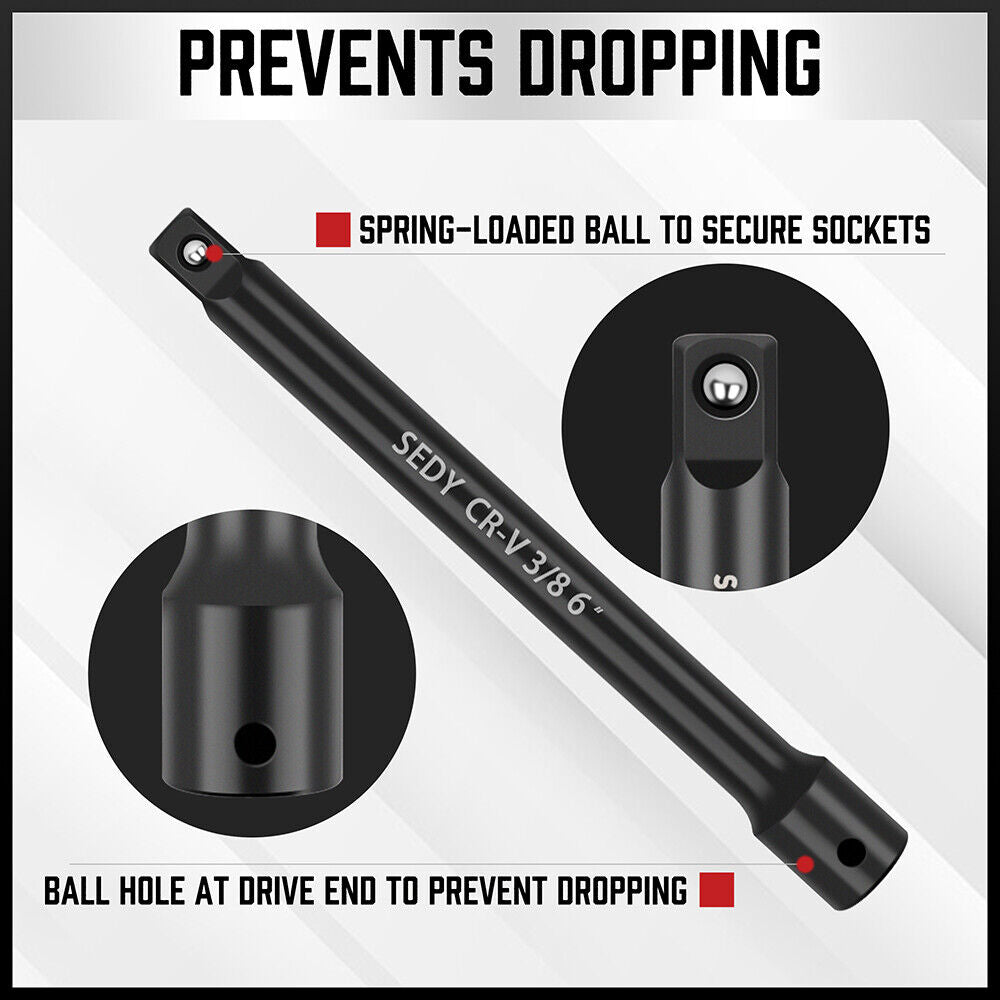 HORUSDY 9Pc Extension Bar Set - Chrome Vanadium Steel, 1/4", 3/8", 1/2" Drive, Spring-Loaded Ball Detent, Corrosion Resistant