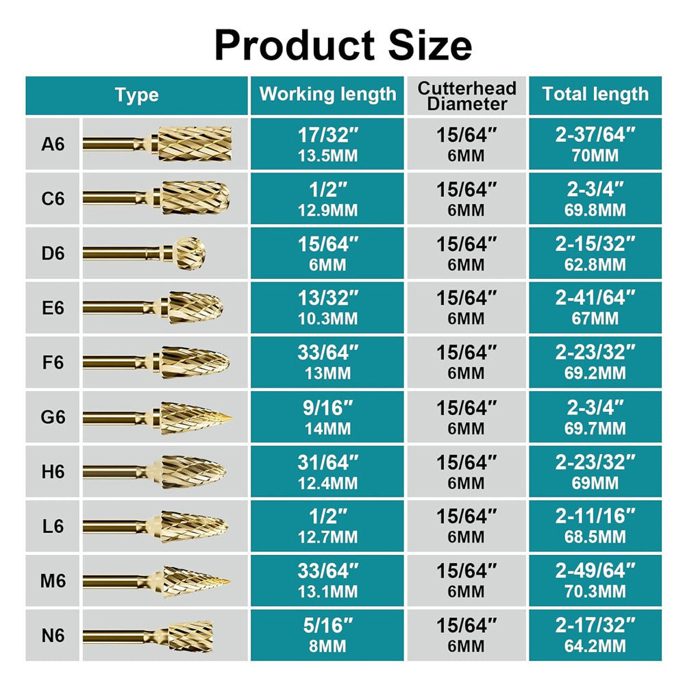 MULTI-SHAPE VARIETY – Includes 10 head profiles (A6–N6) for contouring, hollowing, beveling, engraving, and deburring.