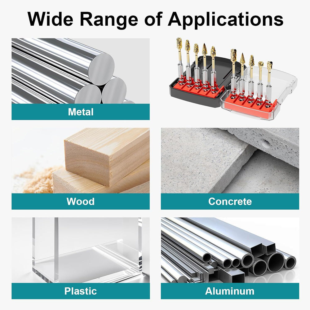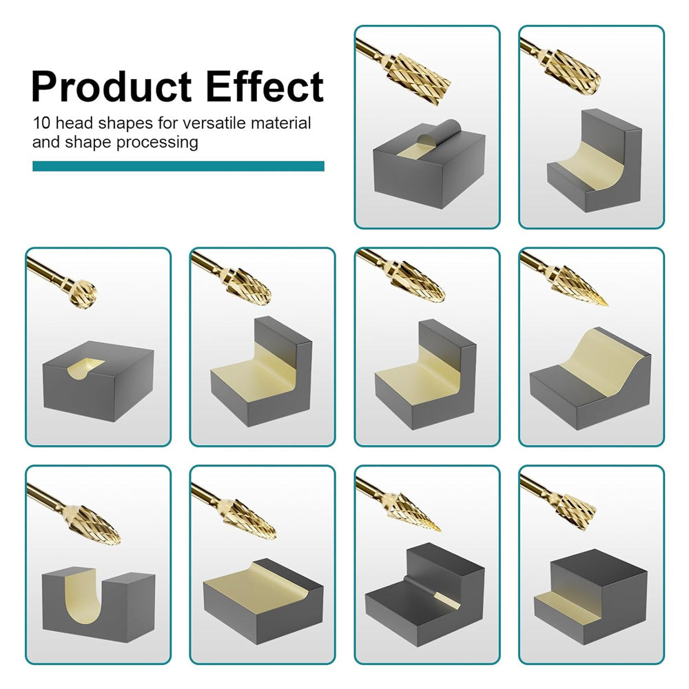 HORUSDY 10Pc Titanium Gold Carbide Burr Set 1/4" Hex Quick Change Shank Die Grinding Bit