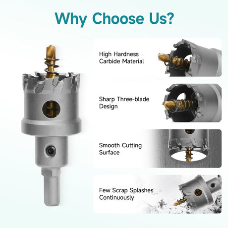 Regular price $26.95Unit price /UnavailableHORUSDY 15Pcs Carbide Hole Saw Kit Carbide Cutter Center Drill L-Wrench Steel AU