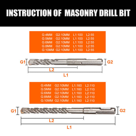 Regular price $82.99Unit price /UnavailableHSS Masonry Drill Bits Hammer Drilling Concrete Head Twist SDS Plus Shank 5-10mm