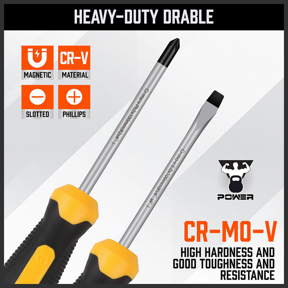 - Magnetic screwdriver set 10PCS include 5 phillips and 5 flat head.