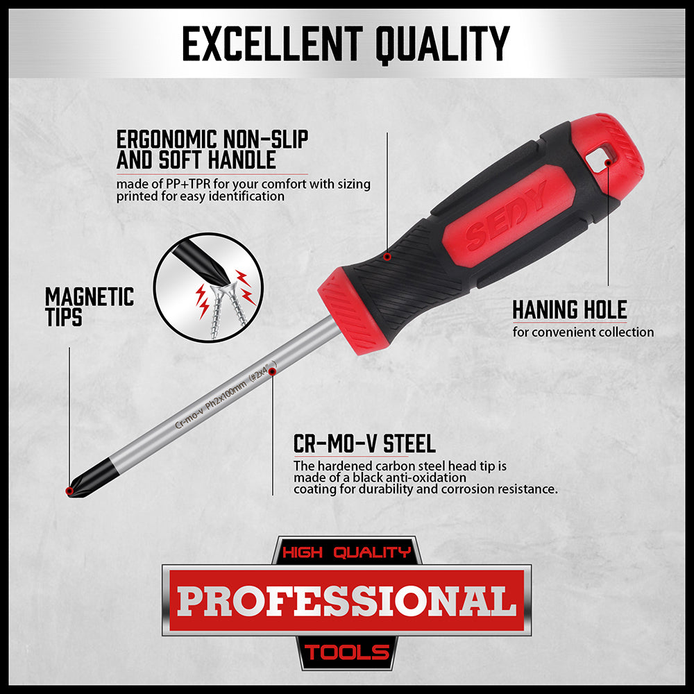 SEDY 11-Piece Magnetic Screwdriver Set with Demagnetizer, CR-MO-V Phillips & Slotted Screwdrivers, S2 Steel Tips, Non-Slip Handles & Portable Storage Case