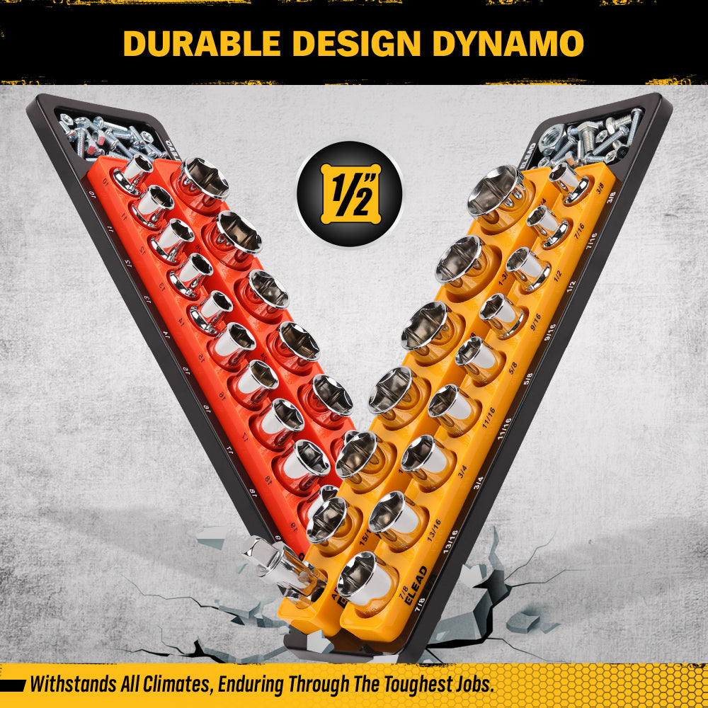 ELEAD 1/2-Inch Magnetic Detachable Socket Organizer Set, 35-Slot MM & SAE Heavy-Duty Socket Holder for Tool Carts, Toolboxes & Workshops