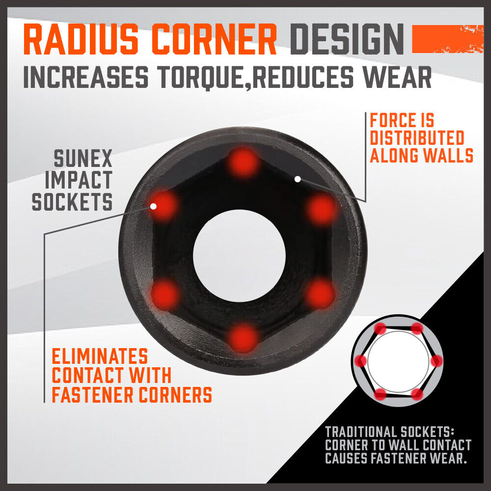 Precision Design – 6-point socket design with radius corners reduces fastener wear and increases torque efficiency.