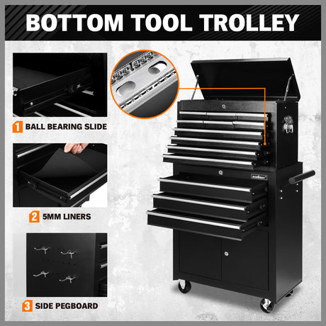 8-Drawer Tool Storage Chest Cabinet Trolley Garage Lockable Box With PegHooks