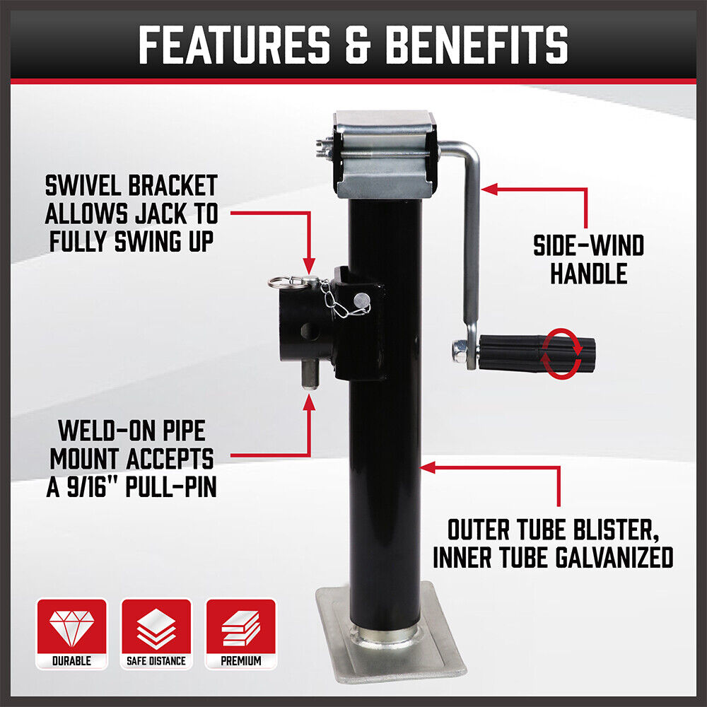 HEAVY DUTY – Built with a robust steel structure, this trailer jack supports up to 5000LBS, providing reliable lifting power for caravans, trailers, and heavy vehicles.