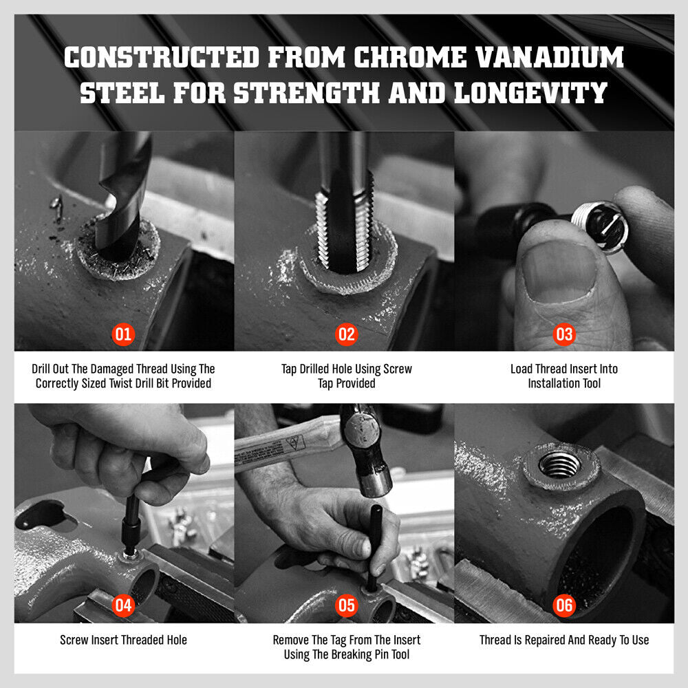 131pcs Helicoil Thread Repair Tool Rethread Repair Kit Metric M5 M6 M8 M10 M12