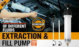 Upgrade your fluid extraction and filling process with the HORUSDY 200cc Waste Fluid Extractor Pump. This manual vacuum suction pump is designed for efficient oil transfer, change extraction, and filling. It is suitable for various fluids such as brake fluid, engine oil, gear oil, transmission fluid, and water. Whether you need to extract or change engine oils or lubricants in ATV's, boats, farm equipment, motor vehicles, or RV's, this pump is ideal for the job. The pump features a durable, oil and chemical-resistant polypropylene construction, making it suitable for use with oil, coolant, and hydraulic systems. It is non-spark and non-power, ensuring safe and reliable operation.