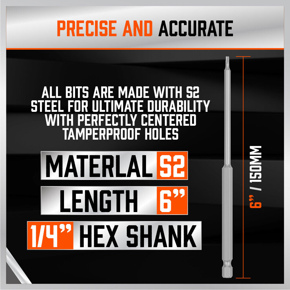 EXTRA-LONG DESIGN – Each bit measures 6 inches (150 mm), allowing access to deep, narrow, or recessed screw positions where short bits can’t reach.