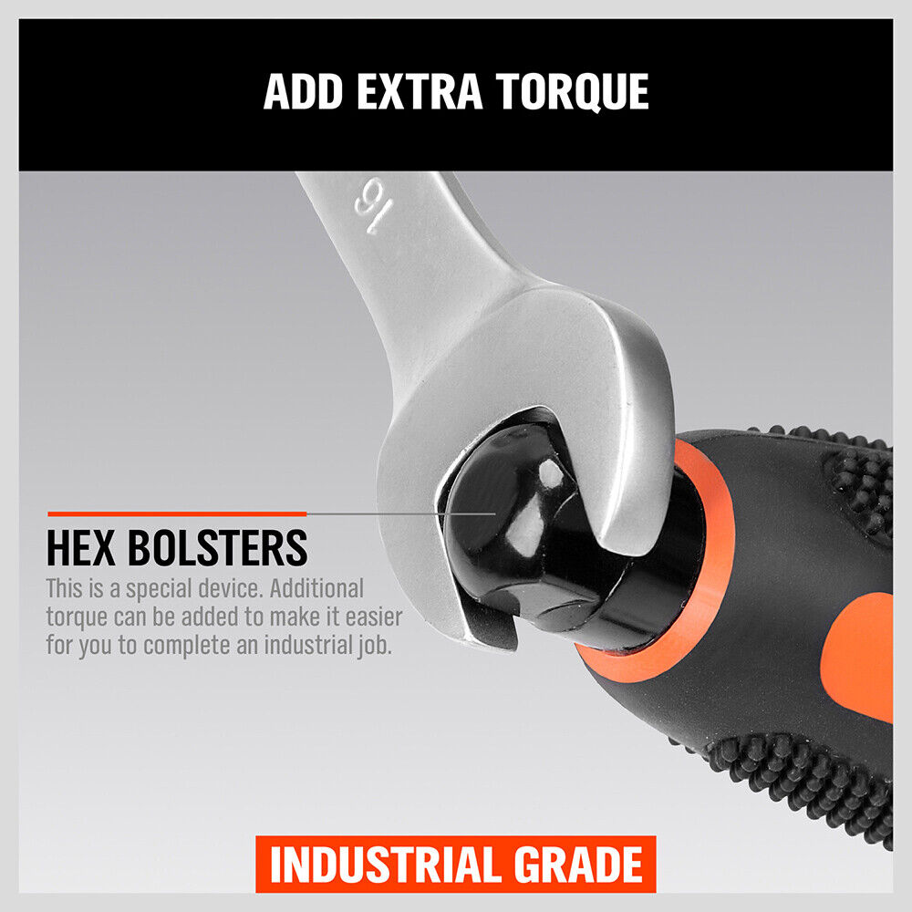 Enhance your fastening, chiseling, and loosening tasks with the HORUSDY 6-Piece Magnetic Screwdriver Set. This set includes 3 Phillips and 3 Flat Head screwdrivers, perfect for various projects. The chrome vanadium steel blades are magnetized for easy screw absorption, while the rubber grip handle offers comfort and control. The pound-thru blade design withstands hammering, preventing splintering. With the hex bolt ends, you can use a wrench for additional torque. Made of heavy-duty CRV material, these industrial-grade screwdrivers are built to last. The set comes with a wall-mounting rack for convenient storage and tool retrieval.