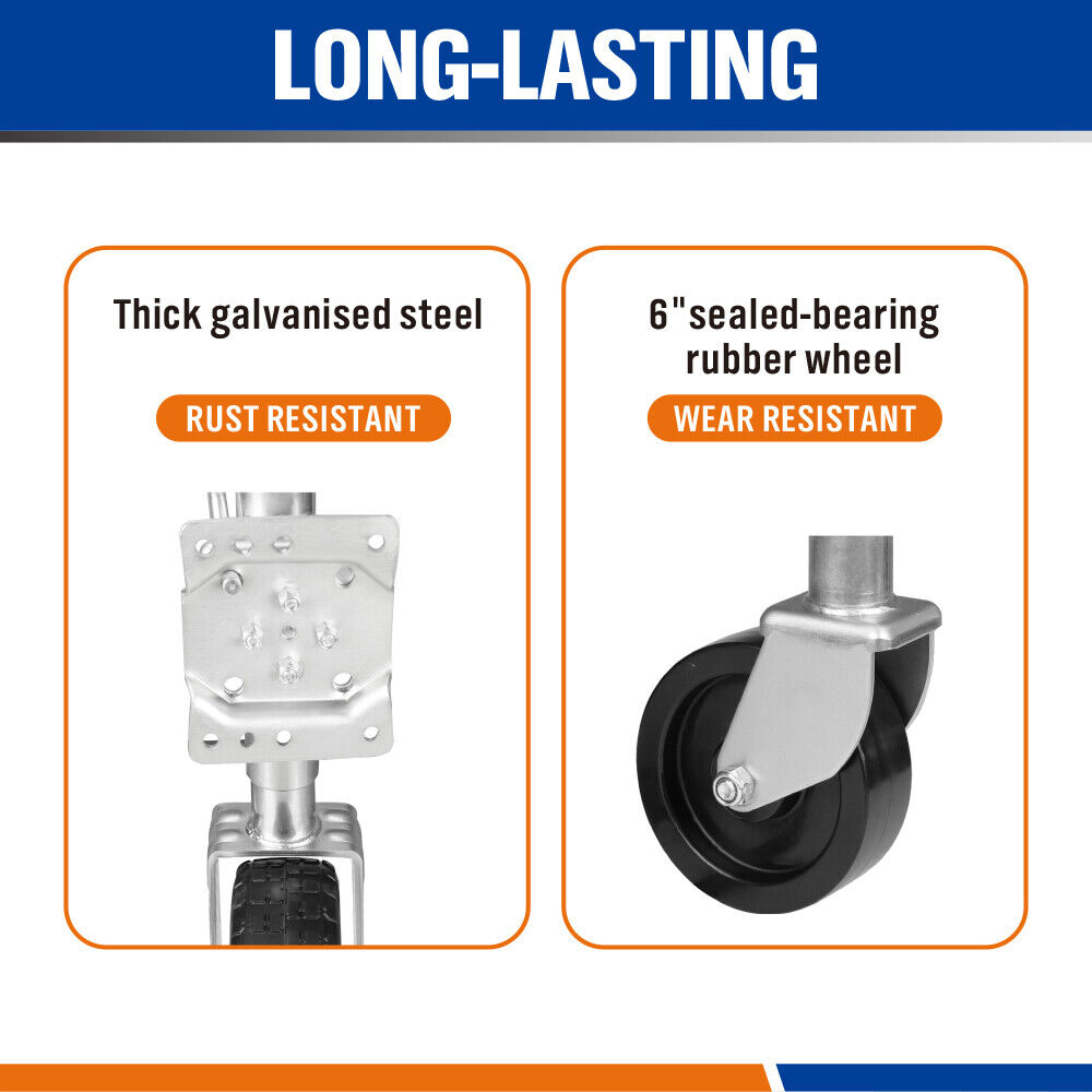 6" Heavy Duty Trailer Jockey Wheel - 1200lbs Capacity, Swivel, Swing Up Design for Caravan and Boat Trailers