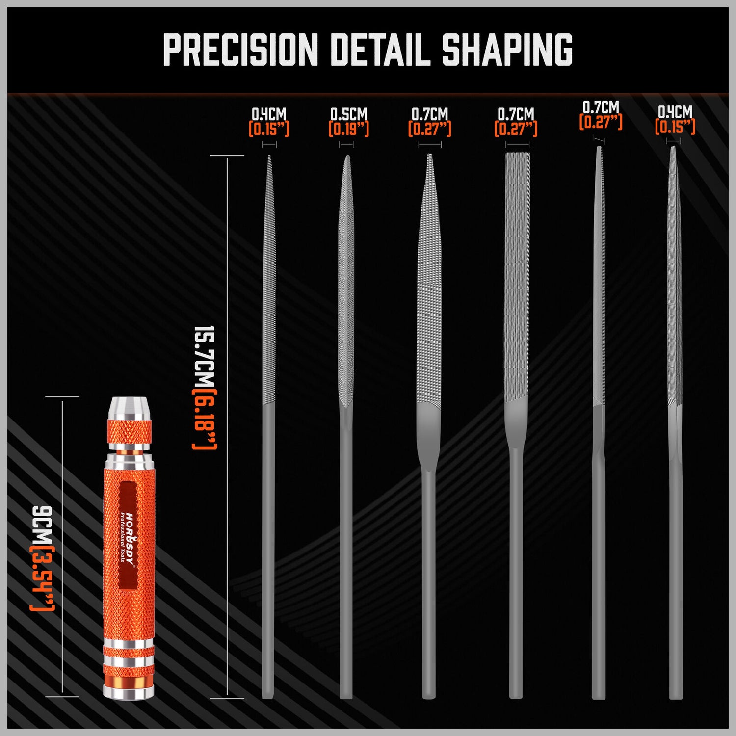 7Pc Mini Needle File Set with Interchangeable Handle - 157mm Long, Ideal for Wood and Metal Carving