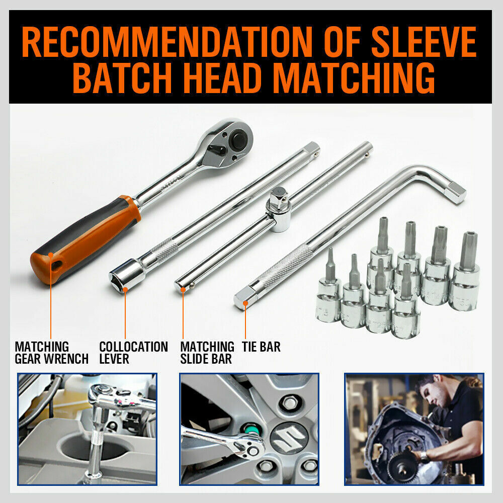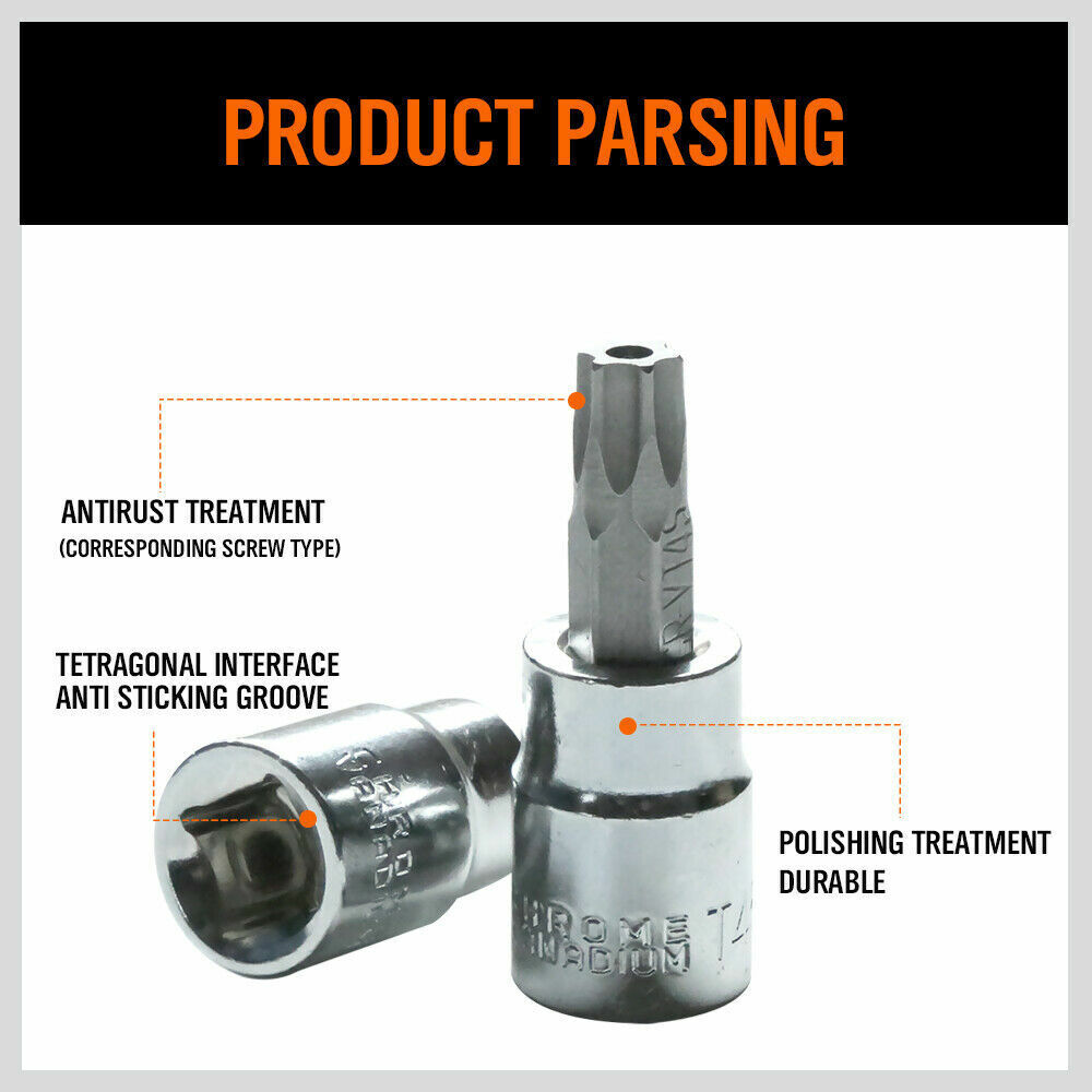 8Pc 3/8" Drive Torx Bit Socket Set - T15-T50 Star Wrench Key, Tamper Proof, with Rail Holder