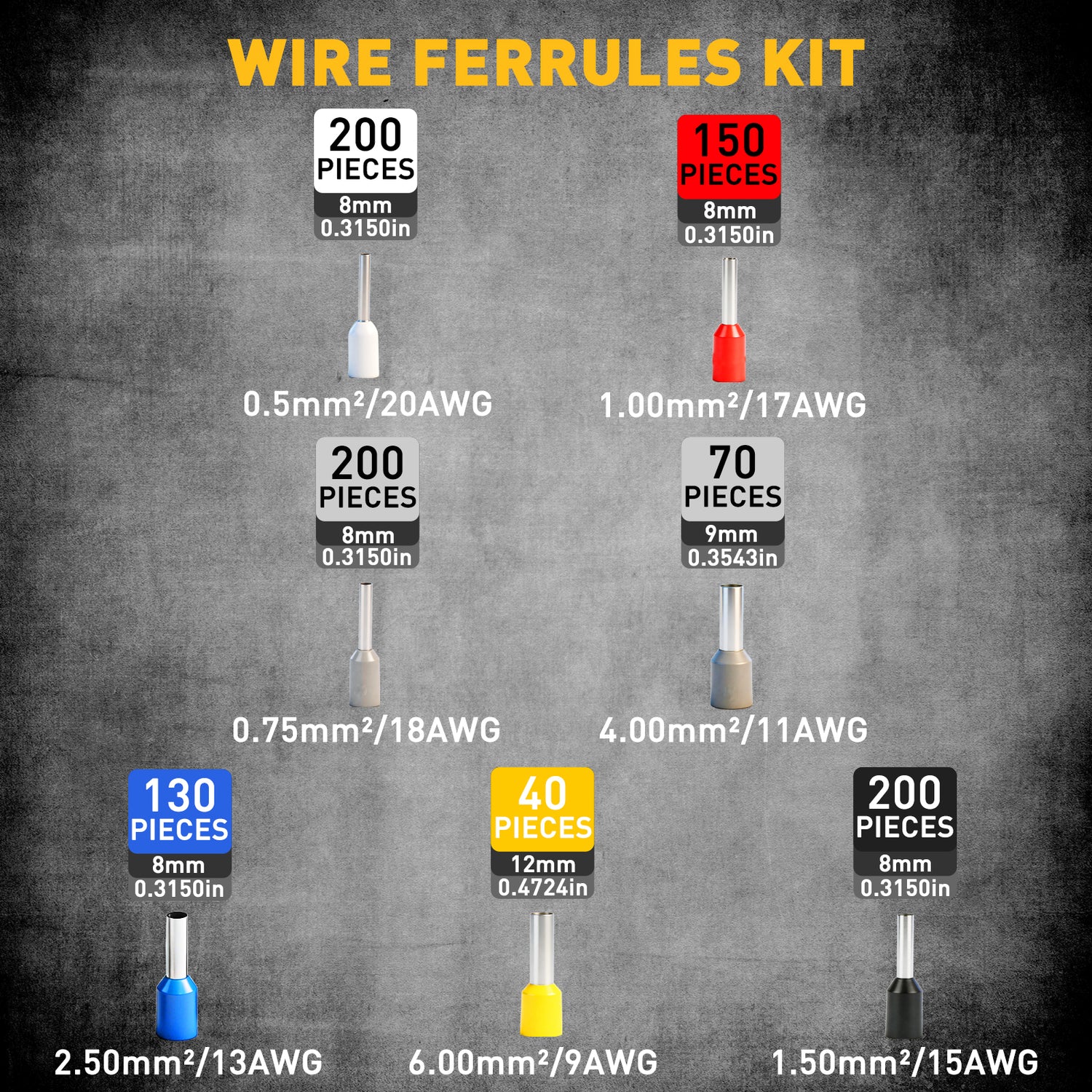 Includes 990 conductor end sleeves in multiple sizes and colors, making it easy to match ferrule size to wire gauge for professional electrical wiring and terminal connections.