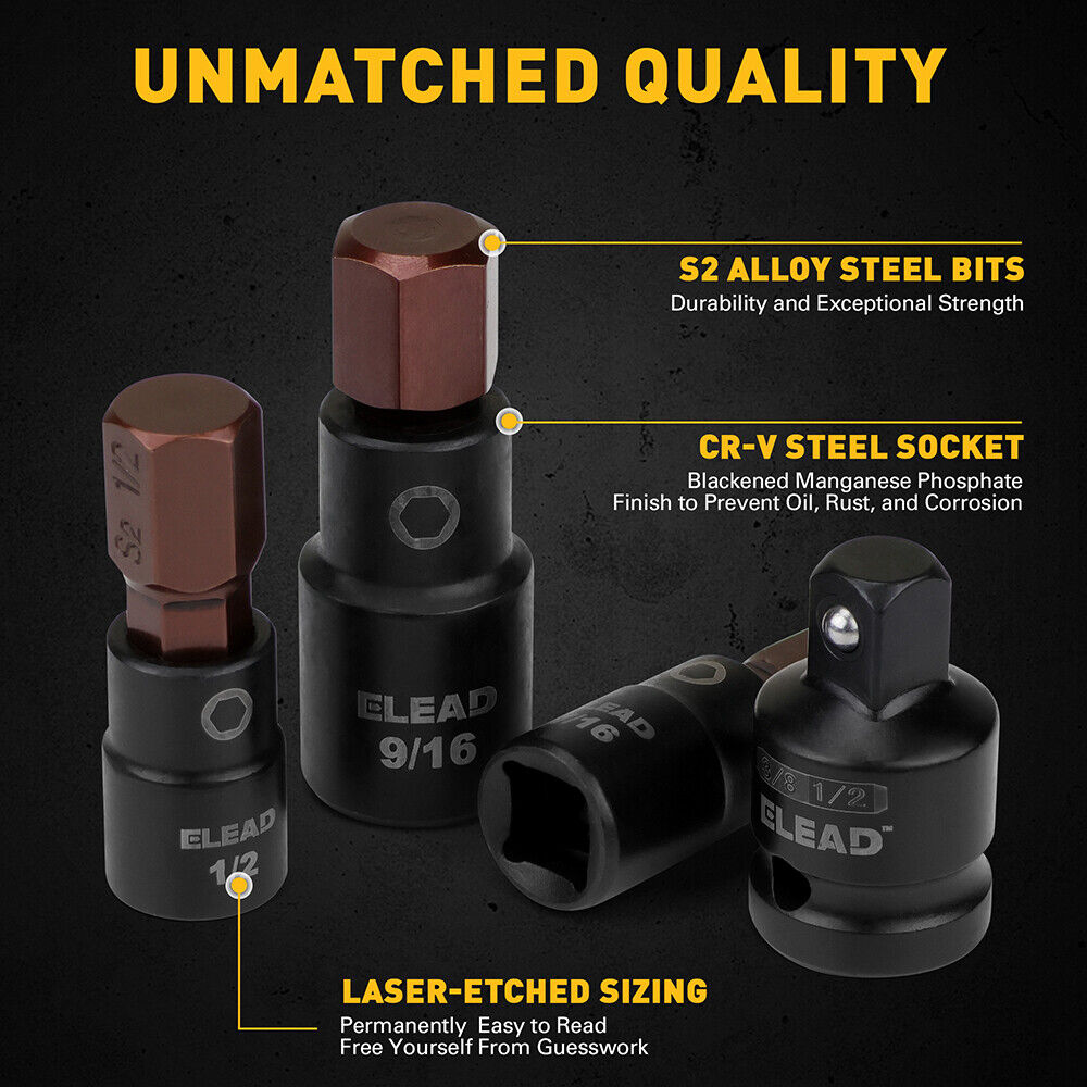 ELEAD Hex Bit Socket Set - S2 Alloy & CR-V Steel, 16 Pieces