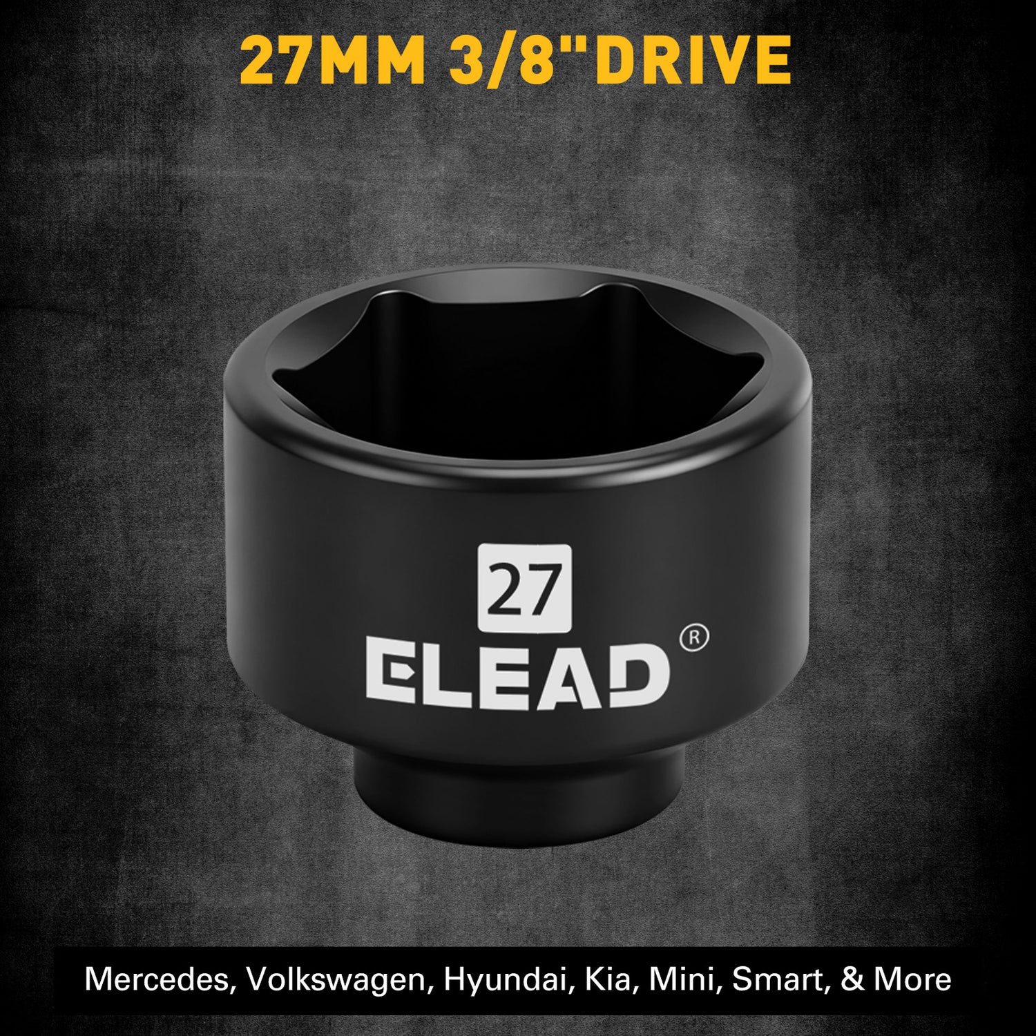 ELEAD 27mm 3/8" Drive Oil Filter Socket, 6-Point CR-V Oil Filter Removal Tool for Mercedes VW Hyundai Kia