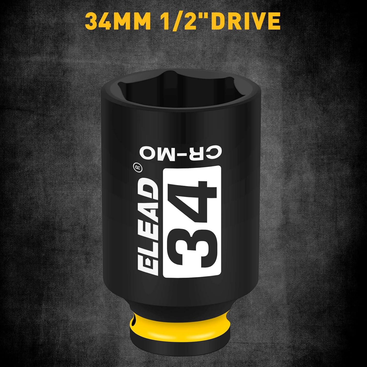 ELEAD 34mm 1/2" Drive Deep Impact Socket, CR-MO 6-Point Heavy Duty Axle Nut Socket for Wheel Hub & Suspension Work