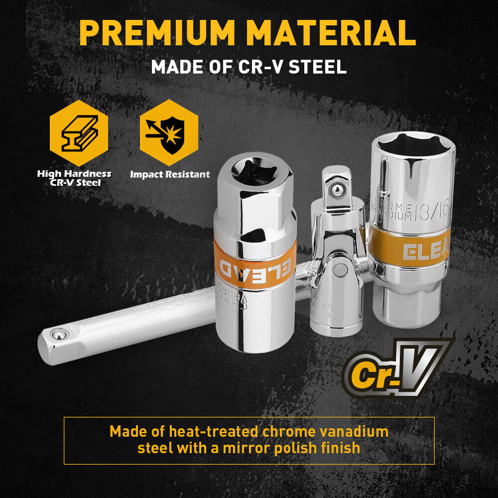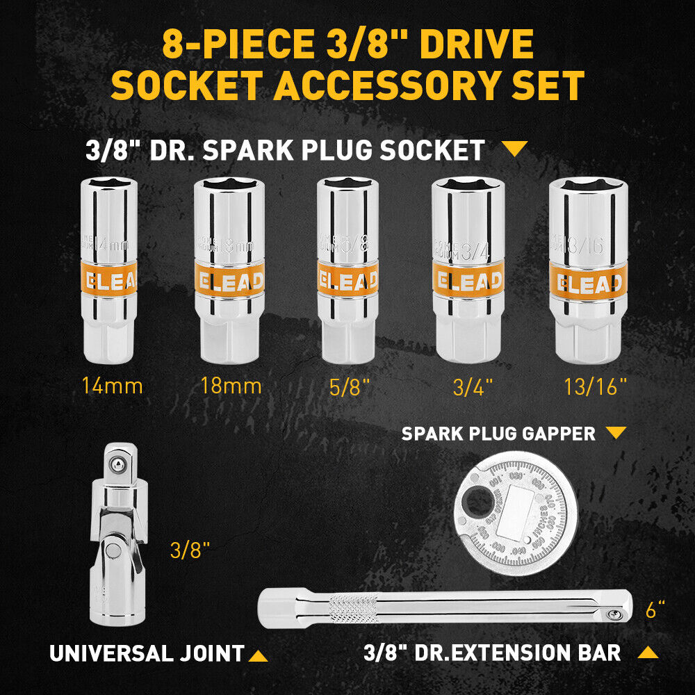 ELEAD 8-Piece 3/8" Drive Socket Accessory Set – CR-V, 6-Point, Spark Plug Gapper