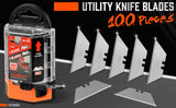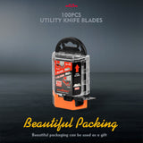 100-PIECE PACK — Includes 100 premium utility knife blades, ensuring long-lasting supply for home, workshop, and professional use.