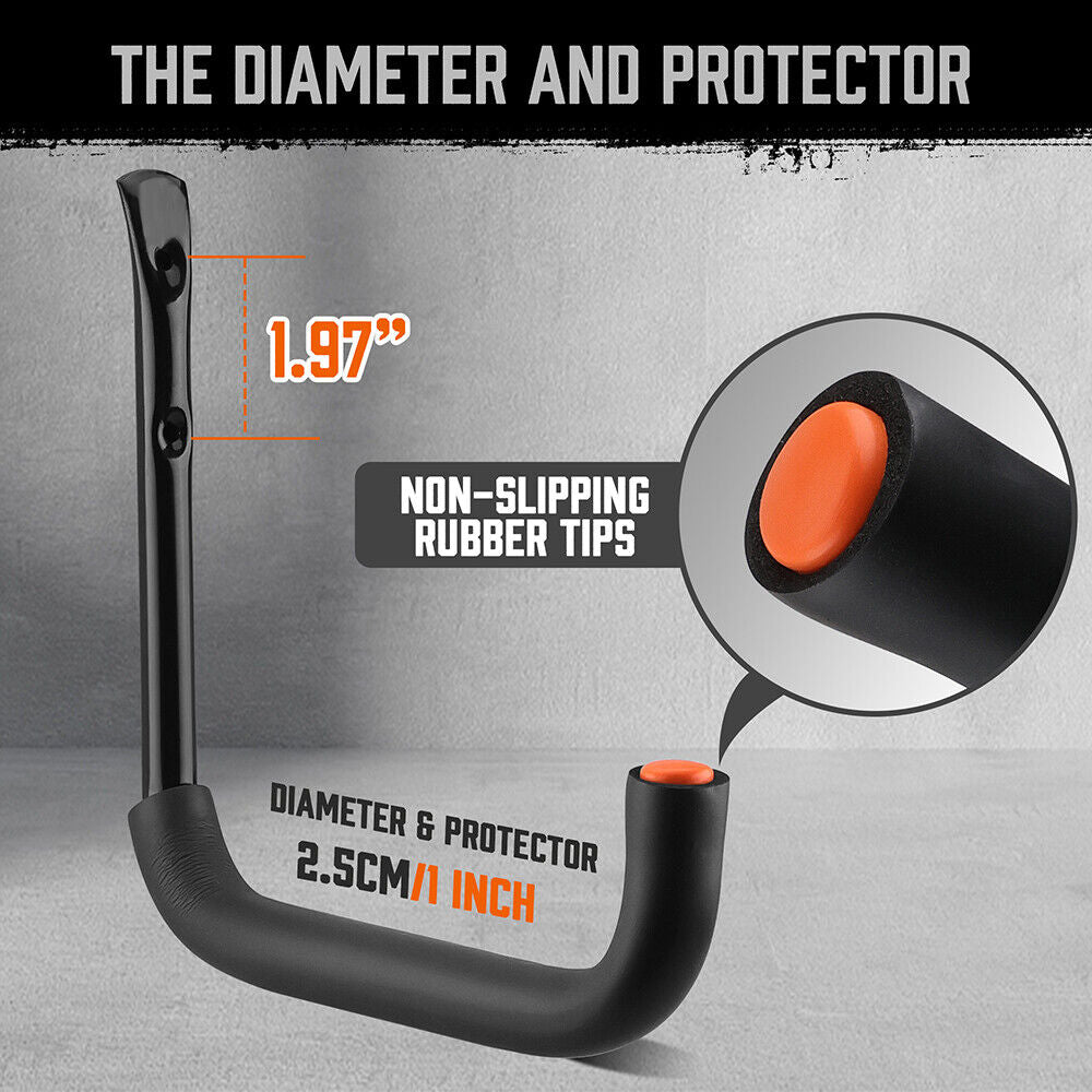 Ideal for hanging ladders, bicycles, power tools, gardening equipment, sports gear, and extension cords — perfect for garage, shed or workspace. -