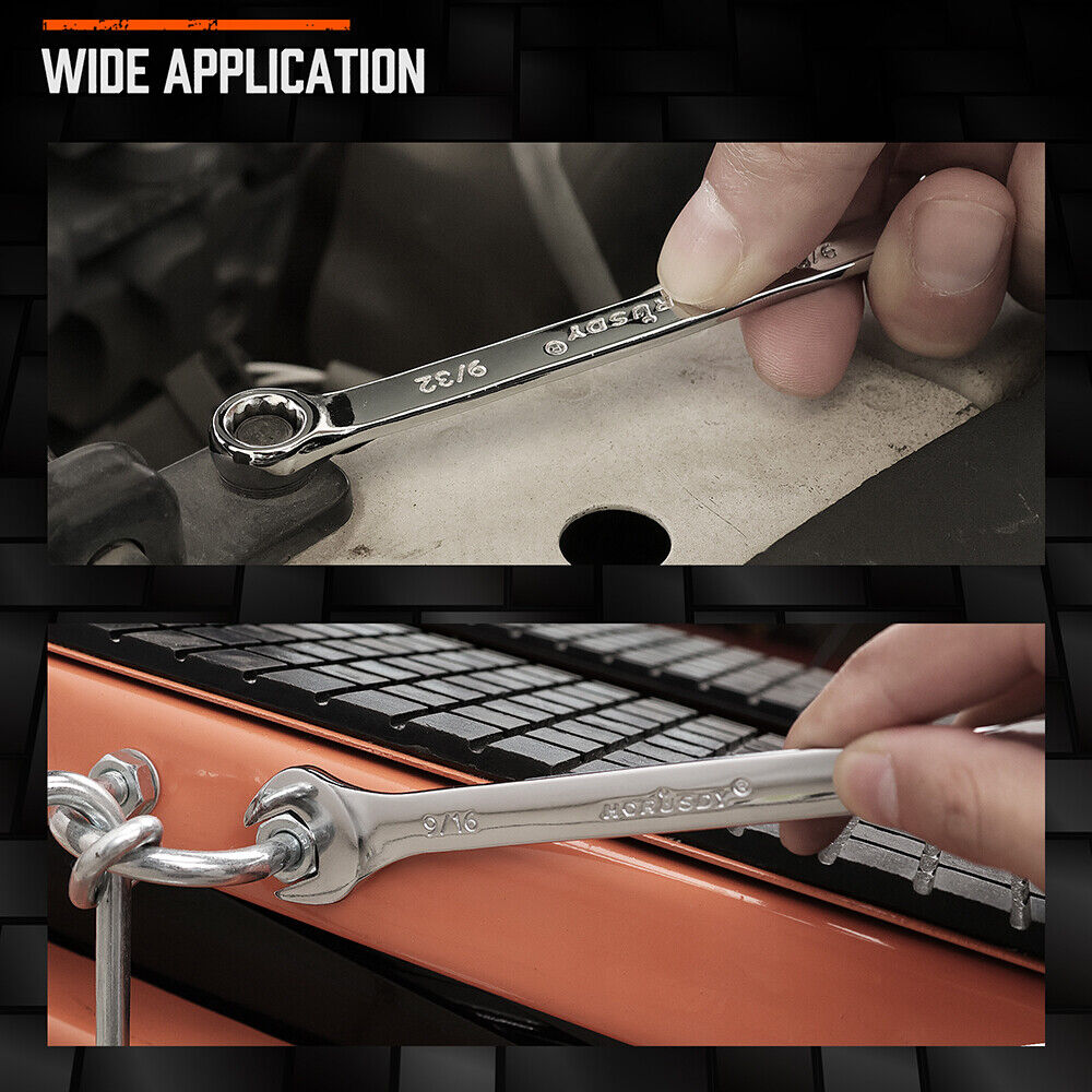 HORUSDY 11Pcs SAE Spanner Set - Durable Chrome Vanadium Steel Wrenches, Sizes 1/4"-3/4", with Convenient Storage Rack