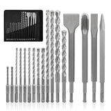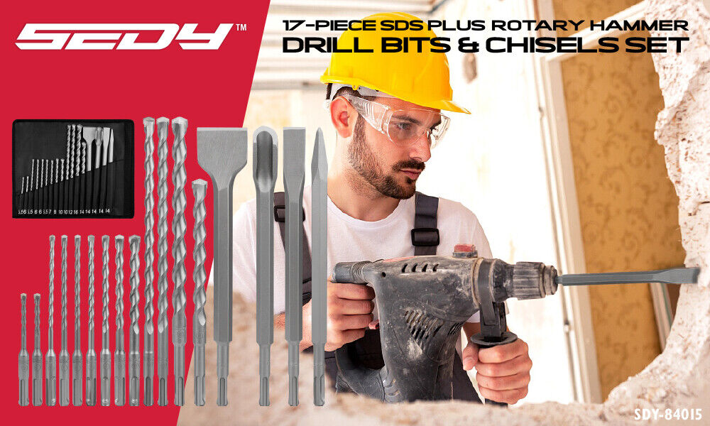 VERSATILE SET – Includes 17 pieces: drill bits and chisels designed for stone, brick, mortar and concrete, ideal for home or trade use.