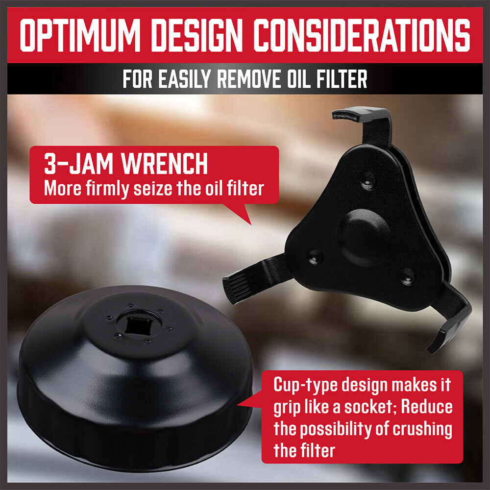 - Thoughtful Design: The low-profile design allows it to reach into the oil filter easily. The 3-jam wrench will give much more catching strength to the filters and make the removal easier.