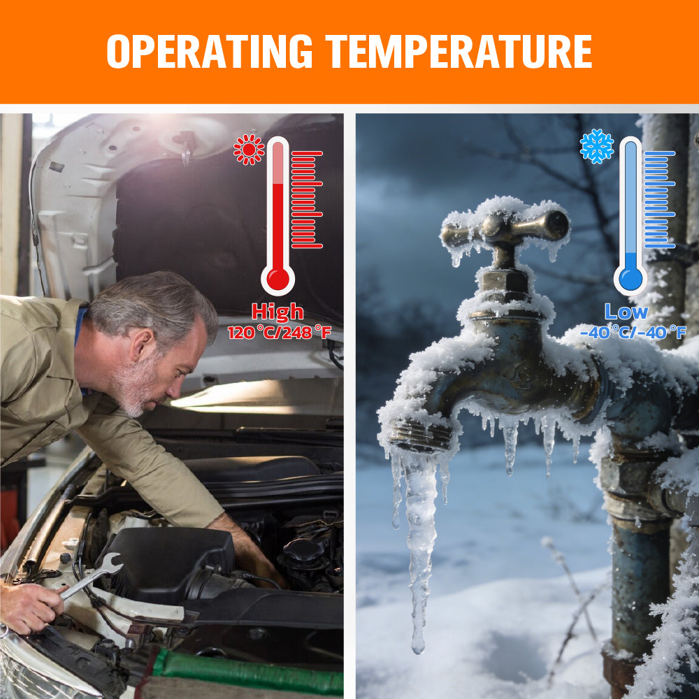 Designed to perform in extreme conditions, with an operating temperature range from -40°C to 120°C (-40°F to 248°F), suitable for both hot engine bays and cold outdoor environments.