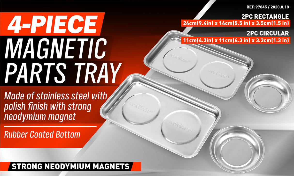 HORUSDY 4-Piece Stainless Steel Magnetic Tool Tray Set - Durable Parts Holder for Automotive Repairs