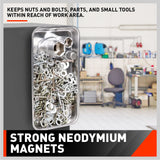 STRONG MAGNETIC BASE – Built with powerful neodymium magnets that securely hold metal parts, even when mounted upside down or vertically on toolboxes and workbenches.