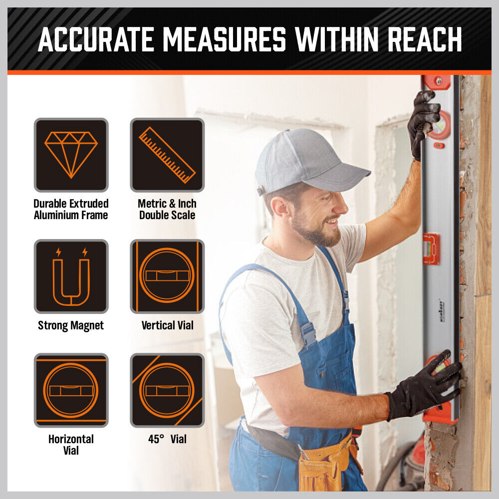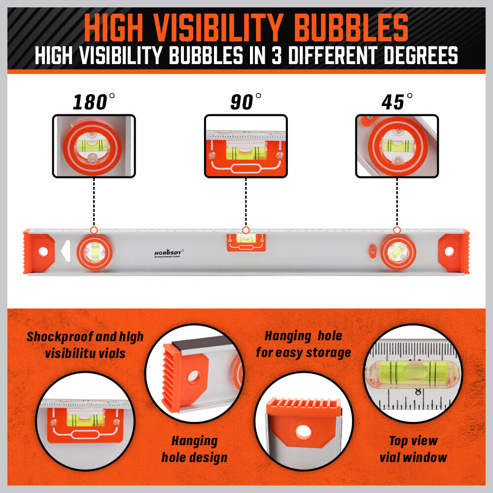 HORUSDY 60CM Torpedo Spirit Level 3 in 1 Magnetic Ruler Stable Measure Tool