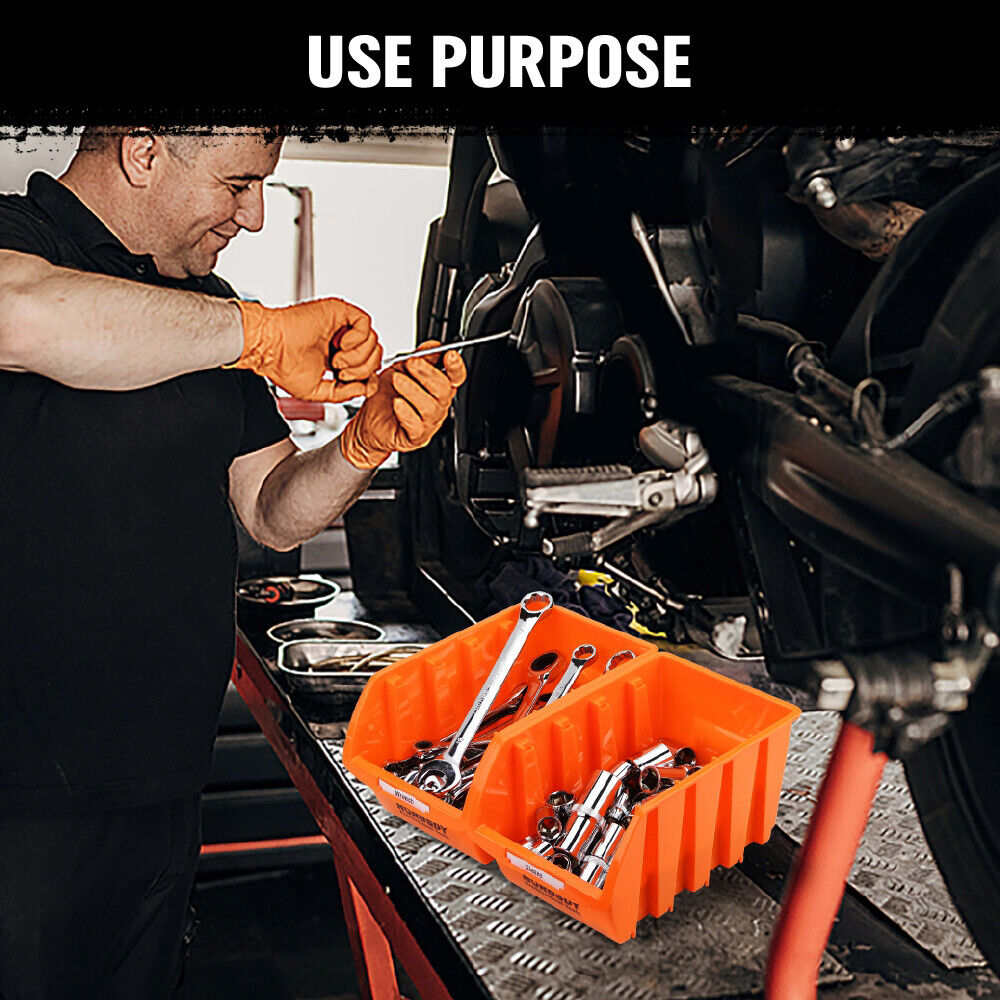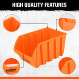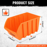 Each bin measures 14.8cm (L) x 24.5cm (W) x 12.6cm (H), offering ample storage capacity for small parts while fitting easily on shelves, workbenches, or inside cupboards.