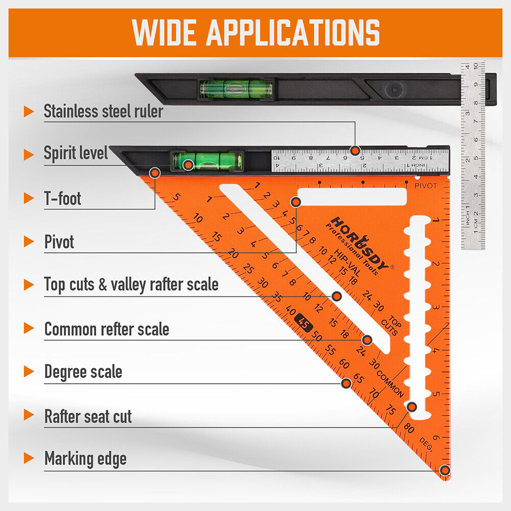 HORUSDY 7 Inch Speed Square Carpenter Square Tool Woodworking Square Ruler Combo
