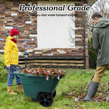 - HEAVY-DUTY CONSTRUCTION: The yard cart is made with quality plastic material and the design with two wheels with footings in the back of the unit provide a balanced position when filling the yard cart.