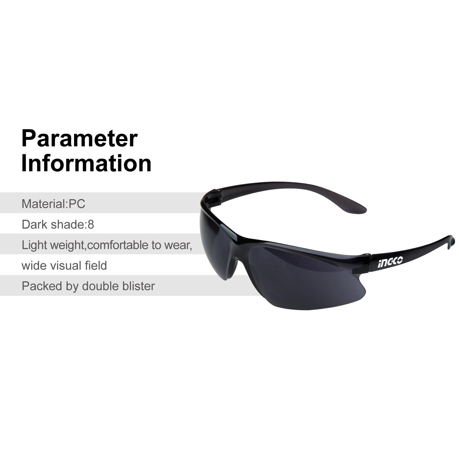 INGCO Lightweight Safety Glasses - Dark Shade 8, Wide Field of Vision, Comfortable Eye Protection