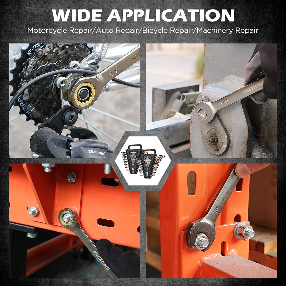 Includes 12 metric (8–19mm) and 12 SAE (1/4"–7/8") wrenches for complete compatibility with all repair tasks.