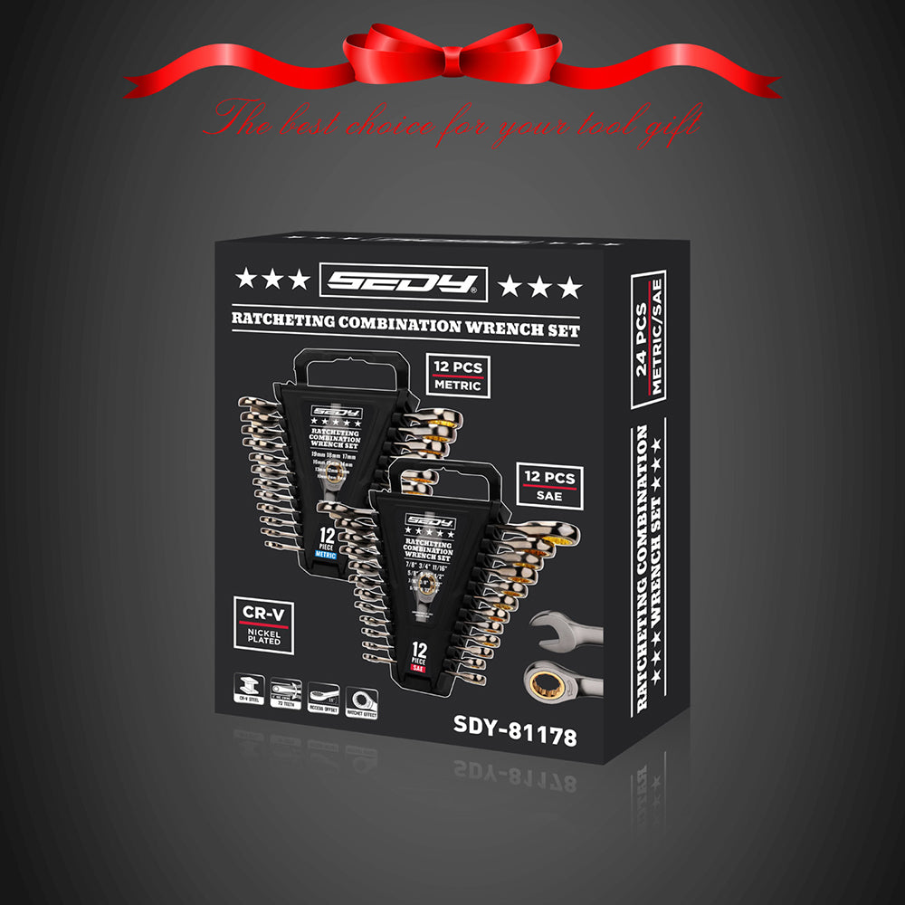 SEDY 24-Piece Metric & SAE Ratcheting Wrench Set, CR-V Steel, 72-Tooth, 12-Point Box End, Magnetic Storage Racks for Auto & Machinery Repair is backordered and will ship as soon as it is back in stock.